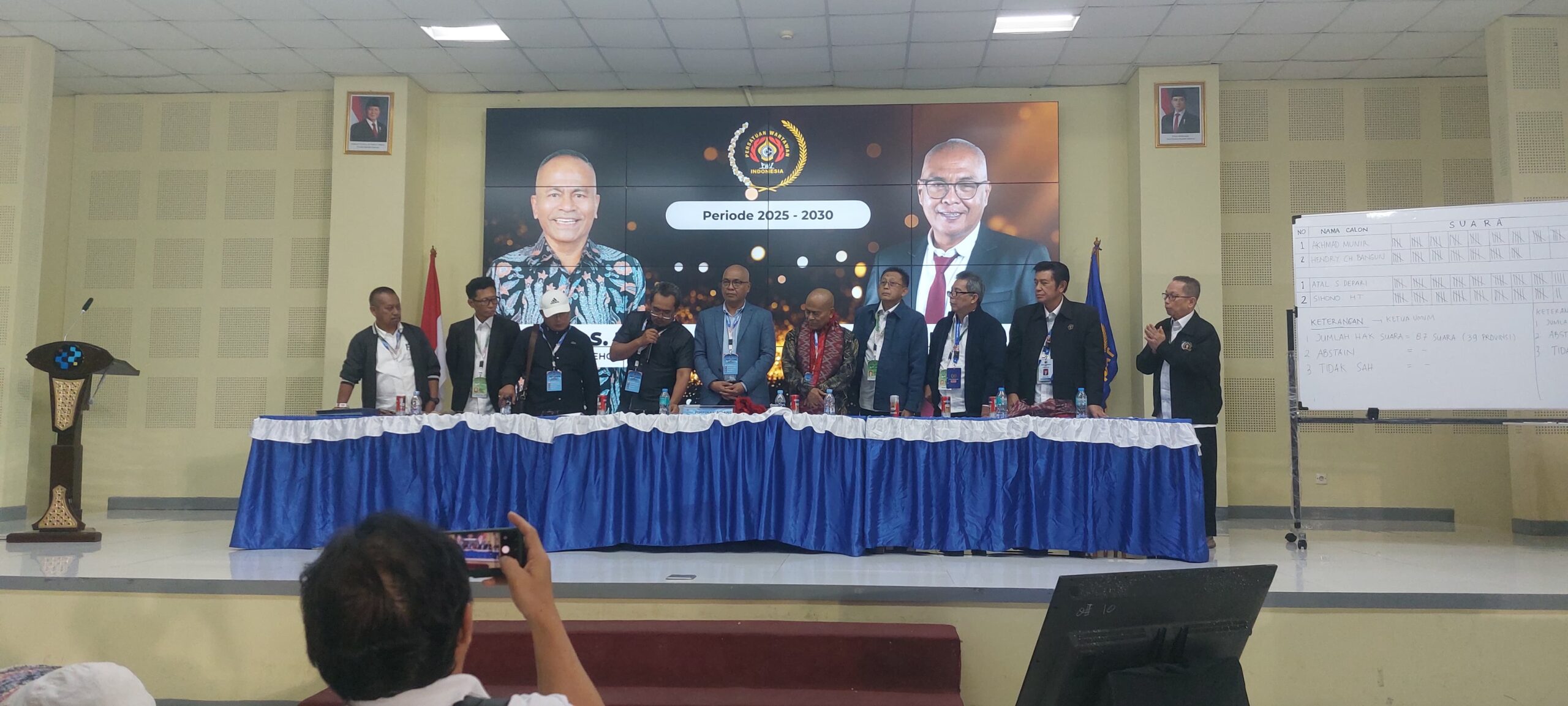 Munir meraih 52 suara dalam pemilihan yang berlangsung pada Kongres PWI 2025 di Balai Pelatihan dan Pengembangan Teknologi Informasi dan Komunikasi (BPPTIK) Komdigi, Cikarang, Jawa Barat, Sabtu (30/8). Sementara itu, calon ketua umum lainnya, Hendry Ch. Bangun, memperoleh 35 suara.