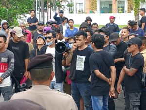 Sejak pagi, massa menyuarakan tuntutan dengan nada tegas: pembebasan penambang rakyat yang ditahan aparat penegak hukum.