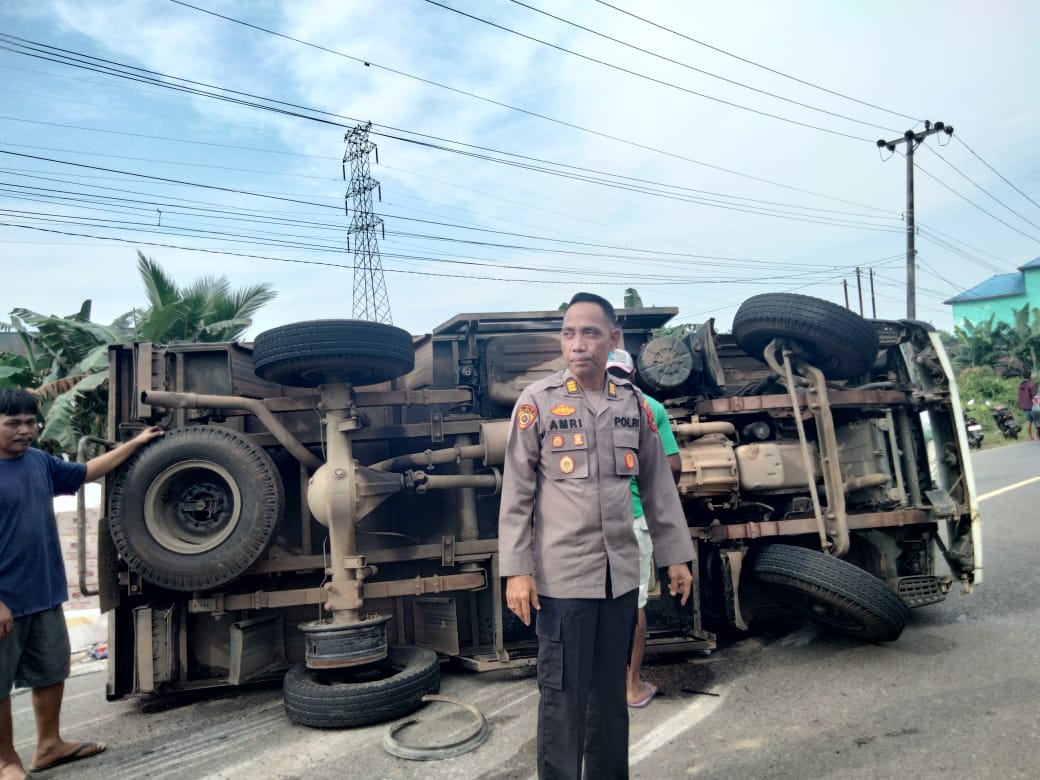 Jalan lintas Desa Dalil, Kabupaten Bangka Barat, mendadak ramai dan tegang ketika sebuah mobil pengangkut sembako dari Pangkalpinang menuju Jebus tiba-tiba terguling akibat ban kiri pecah. Muatan berserakan, pengemudi terjebak, dan arus lalu lintas sempat macet.rabu 3 Desember 2025