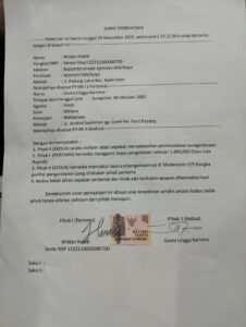 Proses perdamaian dilakukan pada Kamis (20/11/2025) sekitar pukul 19.31 WIB dan ditandai dengan penandatanganan surat pernyataan damai bermaterai.