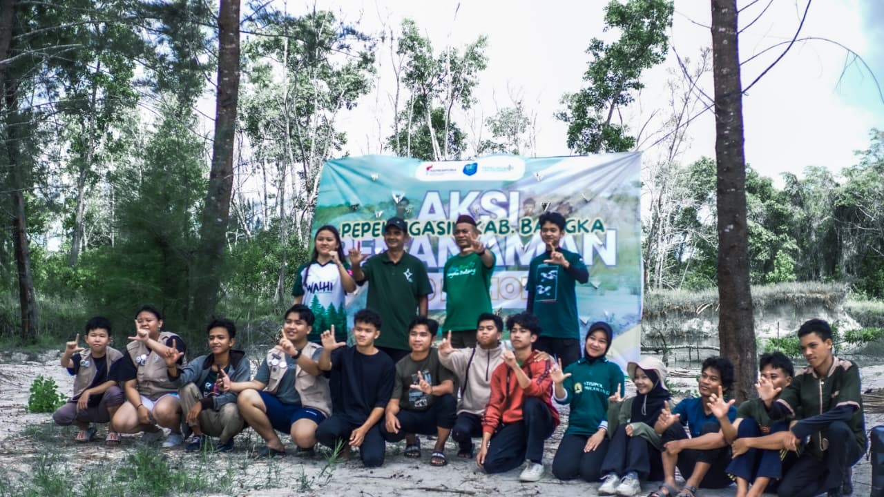 Bangka– Komunitas Pemuda Peduli Lingkungan Asri dan Bersih (Pepelingasih) Kabupaten Bangka menggandeng Taman Bintang Samudra dalam aksi pelestarian lingkungan dengan menanam 100 pohon di lahan eks tambang timah Jalan Ir. Soekarno (Lintas Timur), Air Anyir, pada Kamis (1/2/2026).