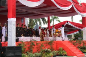 Bertindak sebagai Inspektur Upacara Gubernur Kep.Bangka Belitung Dr. (H.C) Hidayat Arsani, S.E., Komandan Upacara Danyonif 147/KGJ Letkol Inf Aries Ika Satria S.HUB.INT., M.H.I., dan Perwira Upacara Mayor Inf Darmalik, S.E, MM.