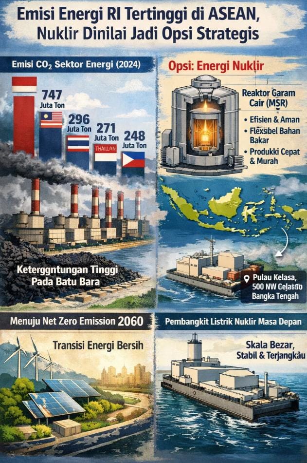 Bahkan secara regional, Indonesia kini menjadi penyumbang emisi energi terbesar di Asia Tenggara secara absolut.