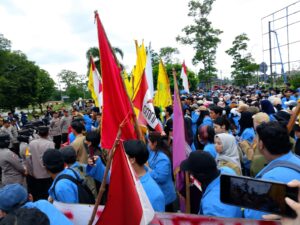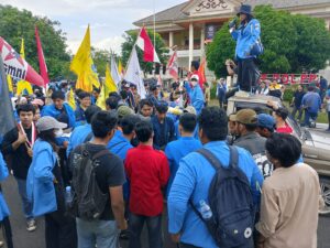 Dalam orasi yang lantang, perwakilan mahasiswa menyebut gedung DPRD sebagai “gedung pengkhianat rakyat”. Pernyataan itu sontak memicu sorak dukungan massa.