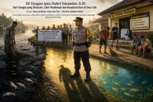 KELAPA, BANGKA BARAT — Di tengah kegelisahan yang mengendap di sepanjang aliran sungai Desa Tuik, ketika udang-udang tak lagi kembali ke jaring nelayan dan air mulai kehilangan kejernihannya, hadir satu keputusan yang mengubah arah cerita. Kapolsek Kelapa, Iptu Dahri Iskandar, S.H., tidak memilih jalan yang lazim. Ia tidak sekadar menindak tetapi ia membina.