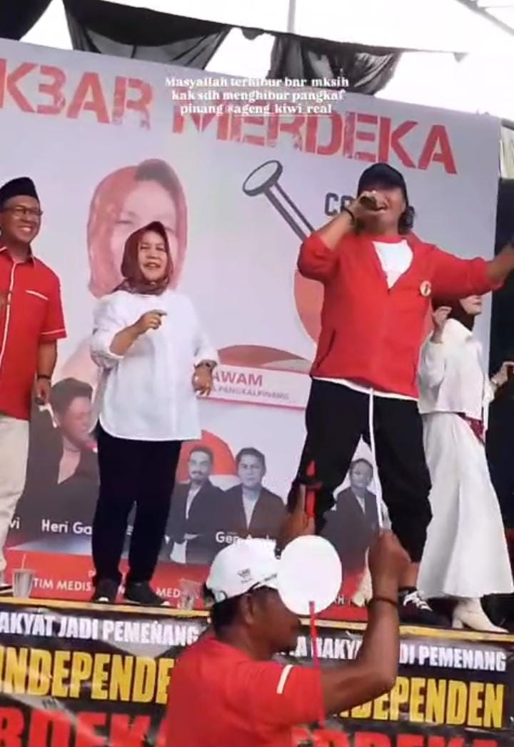“Saya salut sama warga Pangkalpinang yang telah mendukung Bapak Eka dan Ibu Radmida hingga bisa lolos sebagai calon. Itu bukti keberanian rakyat melawan dominasi politik partai. Jangan lupa, tanggal 27 Agustus nanti, sekali Merdeka tetap Merdeka. Coblos nomor 1!” serunya.
