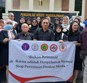 Sementara itu, proses sidang klarifikasi tetap berjalan di PN Pangkalpinang dengan pengawalan ketat. Aksi solidaritas tenaga medis berlangsung tertib hingga siang hari, menandai kuatnya dukungan komunitas kesehatan terhadap dr Ratna Setia Asih dalam menghadapi proses hukum yang mereka anggap penuh kejanggalan tersebut.