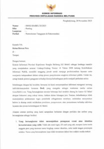 Dalam surat tersebut, KI Babel menegaskan bahwa lembaga ini memiliki mandat undang-undang untuk menjaga profesionalitas layanan keterbukaan informasi publik.