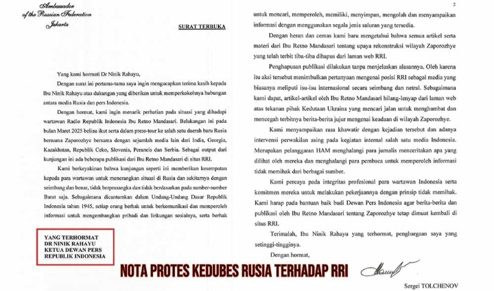 Kemarahan Alumni Program Pendidikan Reguler Angkatan (PPRA) 48 Lemhannas RI tahun 2012 ini bukan tanpa dasar. Ia menerima langsung surat terbuka dari Duta Besar Federasi Rusia untuk Indonesia, Sergei Tolchenov, yang ditujukan kepada Ketua Dewan Pers RI, Dr. Ninik Rahayu. Dalam surat tersebut, Dubes Tolchenov mengekspresikan keprihatinannya terhadap penghapusan artikel Retno Mandasari—wartawan RRI yang ikut serta dalam press tour ke wilayah Zaporozhye, sebuah daerah baru Rusia, bersama jurnalis dari berbagai negara lain.