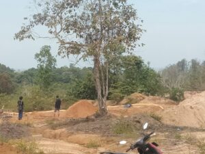 Tanpa garis polisi, tanpa plang larangan, tanpa penyegelan. Yang tampak hanyalah tanah menganga penuh lubang galian, batang kayu berserakan, dan jejak aktivitas berat yang berlangsung intens.