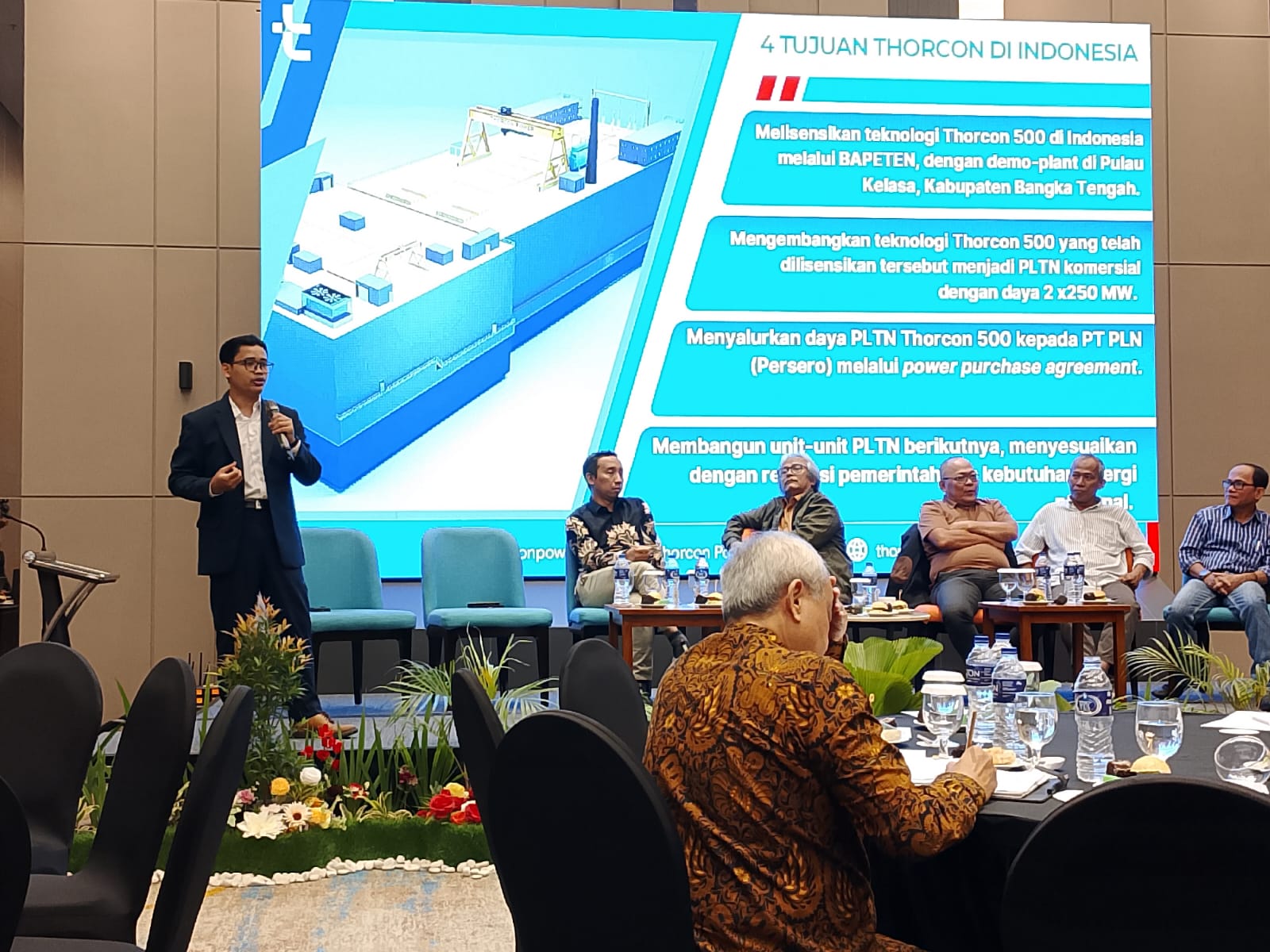 Dari sisi industri, Andri Yanto menjelaskan bahwa perusahaan Thorcon tidak serta-merta membangun PLTN komersial di Indonesia. Fokus utama Thorcon adalah melisensikan dan mengembangkan teknologi melalui pembangunan demonstration plant yang diuji sesuai standar BAPETEN dan IAEA.