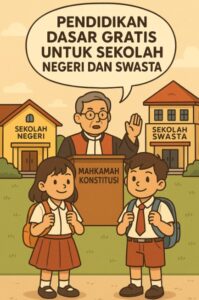 Jakarta, KBO-Babel.com – Mahkamah Konstitusi (MK) kembali menegaskan peran negara dalam menjamin hak pendidikan bagi seluruh warga negara. Dalam putusan penting yang dibacakan Selasa (27/5/2025), MK memutuskan bahwa pendidikan dasar—yang meliputi jenjang SD, SMP, dan madrasah atau sederajat—harus diselenggarakan tanpa memungut biaya, baik oleh sekolah negeri maupun swasta. Rabu (28/5/2025).