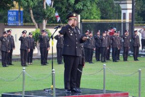 Kapolres Bangka Tengah bertindak sebagai inspektur upacara, yang diikuti oleh seluruh personel Polres Bangka Tengah.