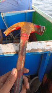 Barang bukti berupa 1 buah palu berhasil diamankan sebagai alat yang digunakan dalam aksi kekerasan tersebut, Motif dan Modus Operandi Dari hasil pemeriksaan awal, penganiayaan dilatarbelakangi oleh rasa sakit hati pelaku terhadap korban, yang dinilai sering bermalas-malasan dan diduga mengambil pasir timah di ponton tempat mereka bekerja.