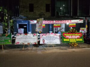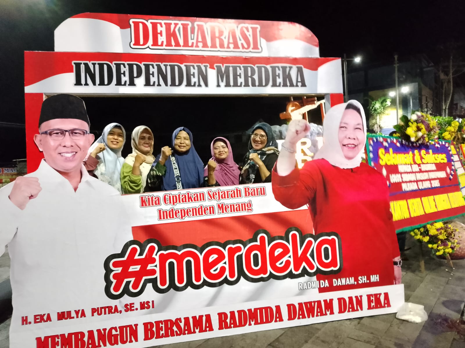 Di sepanjang area tugu hingga Posko Relawan Merdeka, tampak berjejer papan ucapan selamat dan sukses dari berbagai kalangan — mulai dari tokoh masyarakat, pengusaha lokal, komunitas pemuda, hingga organisasi kemasyarakatan.