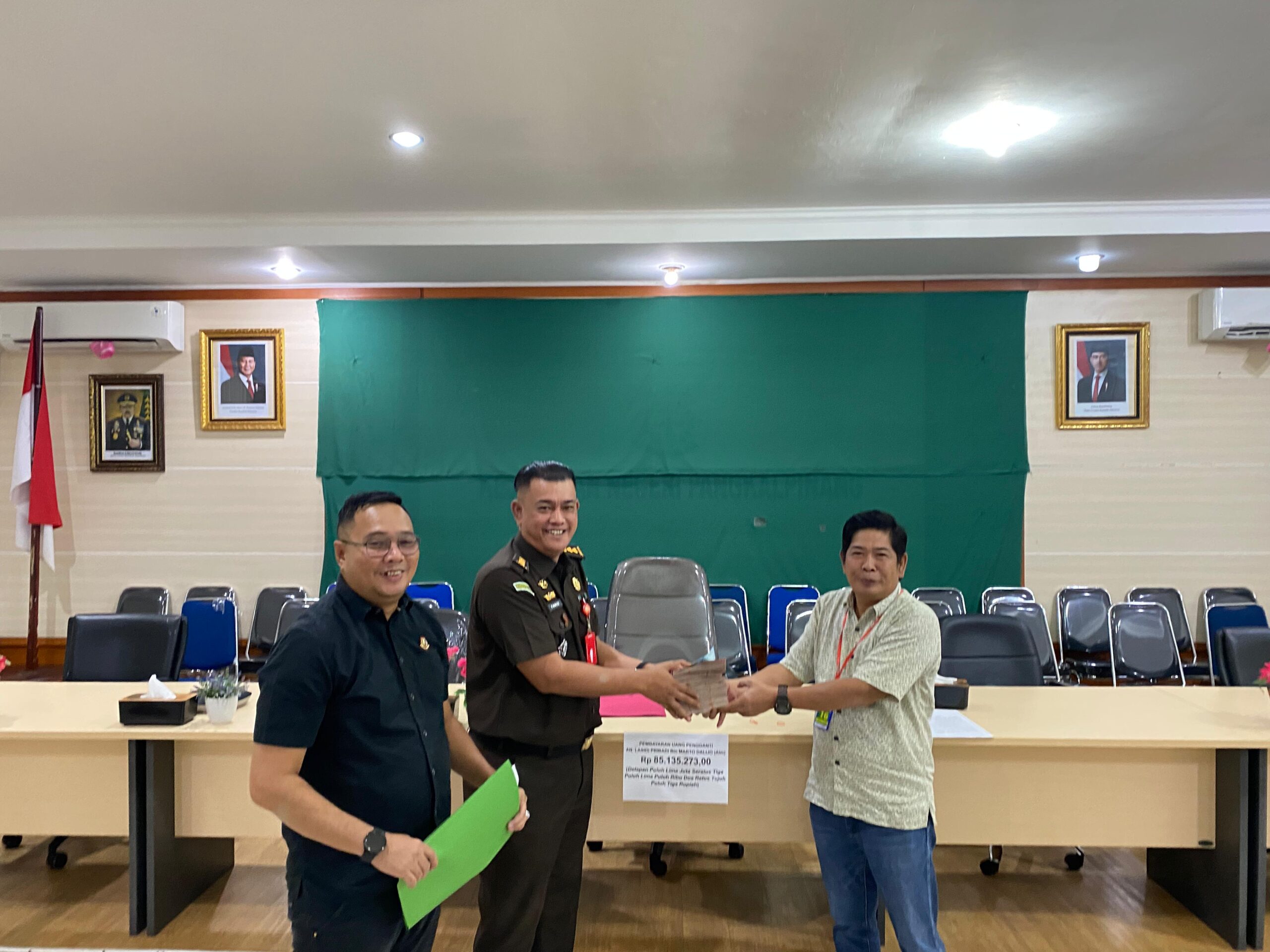 Kepala Seksi Tindak Pidana Khusus Fariz Oktan, S.H., M.H., menerima langsung pembayaran tersebut yang diserahkan oleh pihak keluarga terpidana, didampingi oleh Kepala Seksi Intelijen Anjasra Karya, S.H., M.H.