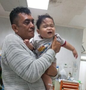 Ia kemudian membawa sang buah hati ke RSBT Pangkalpinang untuk mendapatkan perawatan.