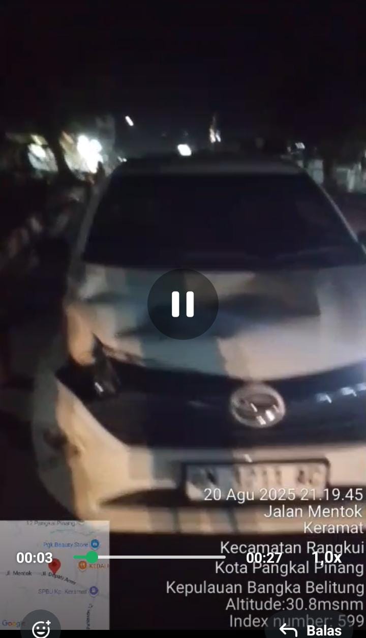 PANGKALPINANG – Sebuah video detik-detik kecelakaan yang melibatkan pimpinan media online suratkabarterkini.co.id, Sukarto alias Totok (43), beredar luas di grup WhatsApp wartawan Bangka Belitung. Jum’at (29/8/2025).