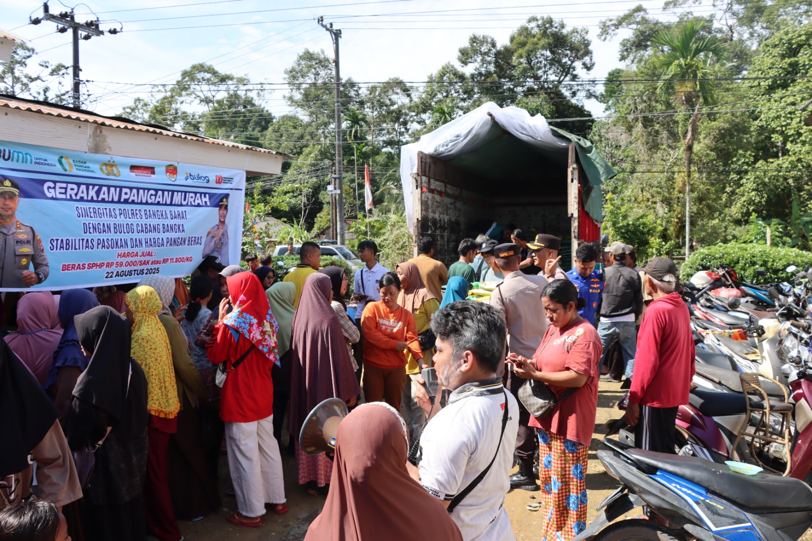 Program Gerakan Pangan Murah yang digelar oleh Polres Bangka Barat bersama jajaran Polsek di seluruh wilayah Kabupaten Bangka Barat pada Jumat, 22 Agustus 2025, mendapat sambutan hangat dan antusiasme tinggi dari masyarakat. Sebanyak 7 ton beras SPHP kemasan 5 kg yang dijual seharga Rp 59.000 berhasil habis terjual dalam sehari.